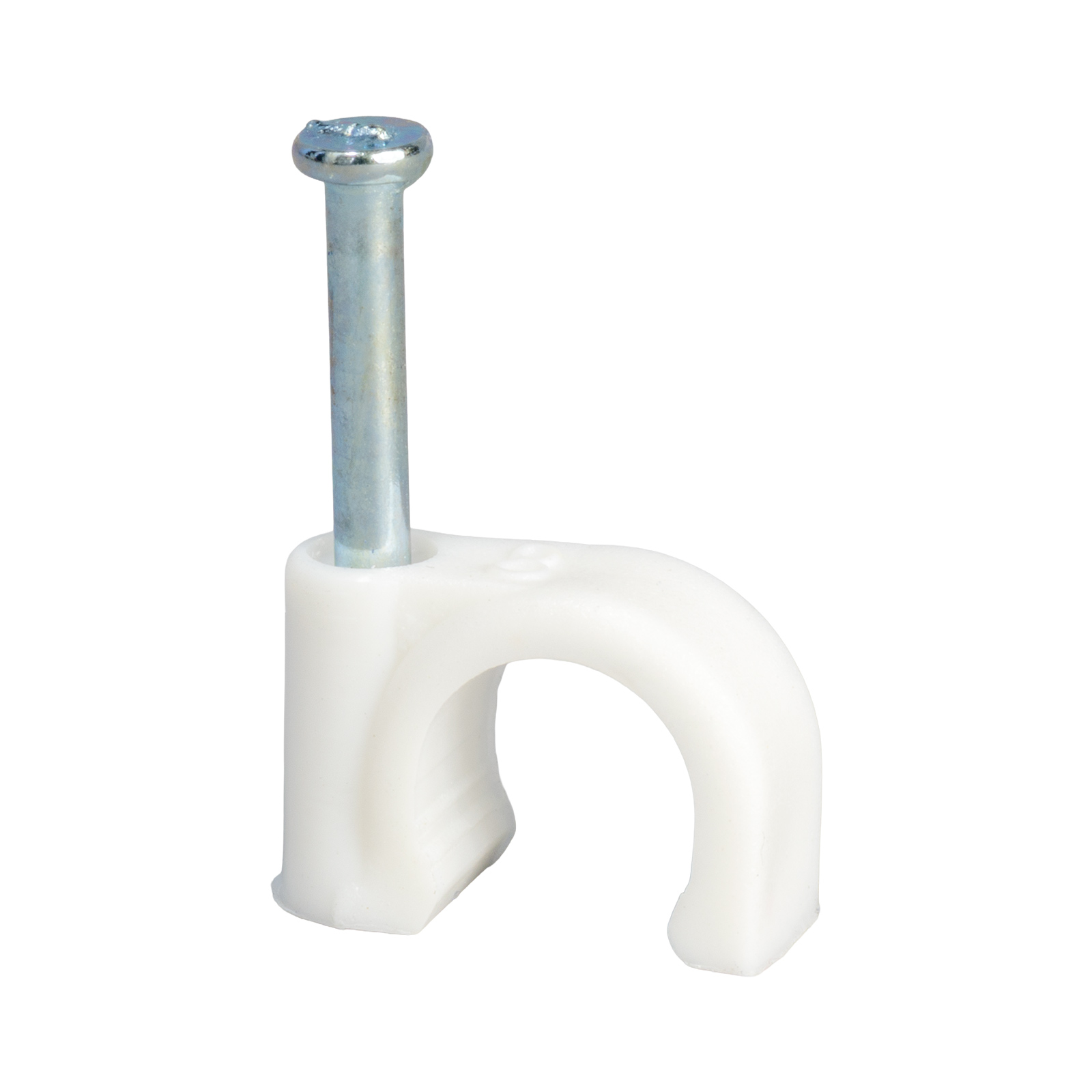 - Uchwyt kablowy z gwoździem FLOP-8, okrągły przewód ⌀8mm, biały, gwóźdź: 2x21mm